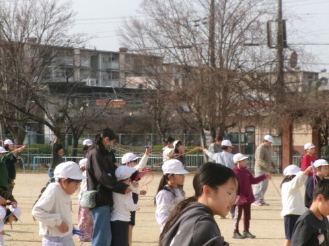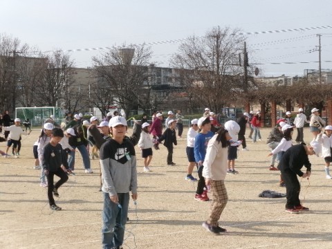 3学期の体力づくりの取組として「なわとびタイム」が始まりました。音楽に合わせて軽快に跳ぶ子どもたちの姿が見られます。二重跳びやあや跳びなど、先生に見てもらいたい技を練習する姿もあり、意欲的に取り組んでいます。