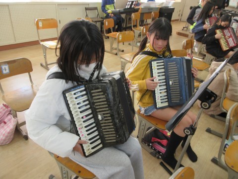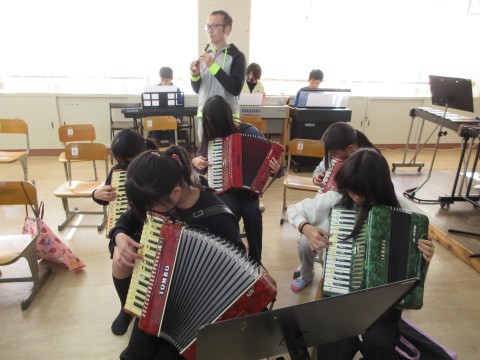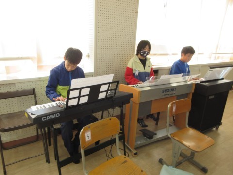合奏の練習を頑張っています。パートごとの音が重なってきて,完成に近づいてきました。