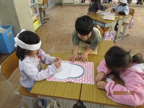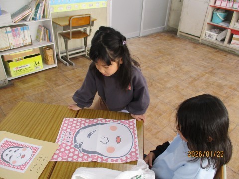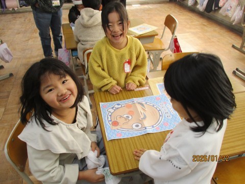 今日はみんなで「ふくわらい」をしました。