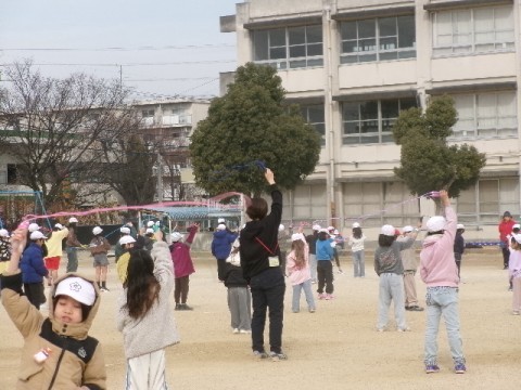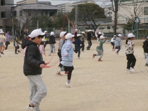 今日も元気に「なわとびタイム」に取り組みました。練習の成果が表れ、一人ひとりが二重跳びなどの回数を増やしていっています。
