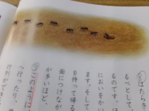 「ありの行列」 説明文を読んで考えます。 なぜ行列ができるのだろうか。