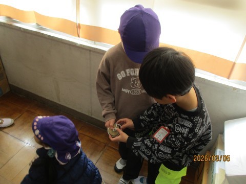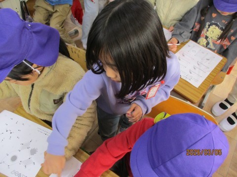 いっしょに昔遊びを楽しんだあと,自分の席に座らせてあげて授業体験をしてもらいました。