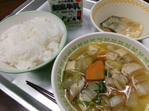 「ごはん、牛乳、よせ鍋風、さばのみそ煮」