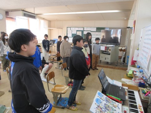 最後の音楽の学習でした。6年間やってきたことをふり返って,世界の音楽にふれました。