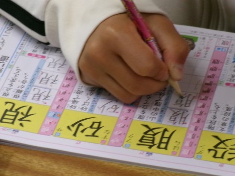 宿題の答え合わせ、タブレットで「すし打ち」、漢字ドリルを進めています。