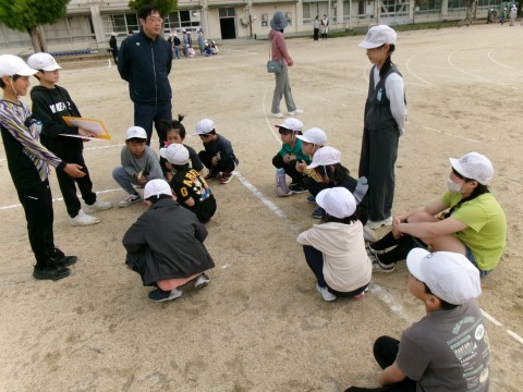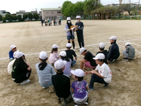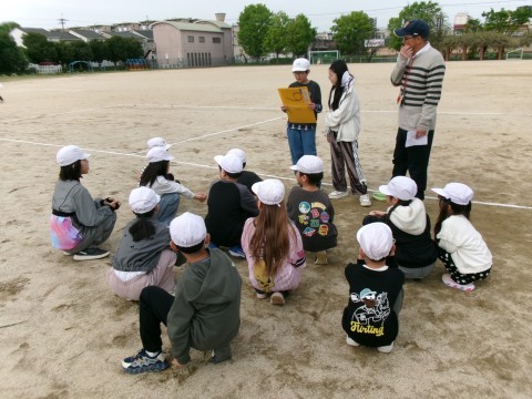 6年生がリーダーとなり、1年から6年のたてわり班で遊びやゲームを楽しみます。