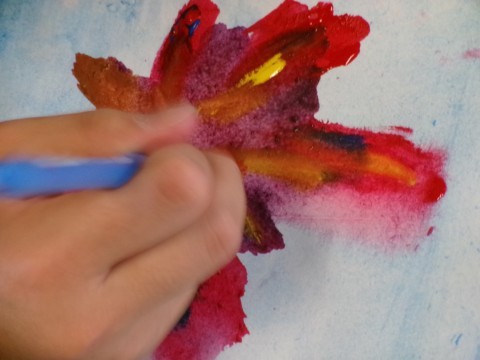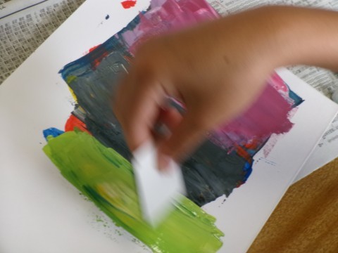 いろいろな身のまわりのものを使って、絵のぐで楽しく遊ぼう。
