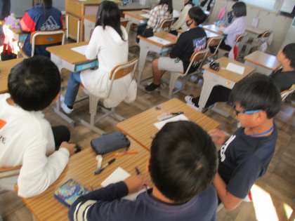 紙の表裏に書かれた時計の針をつかって、変わり方のきまりについて考えました。