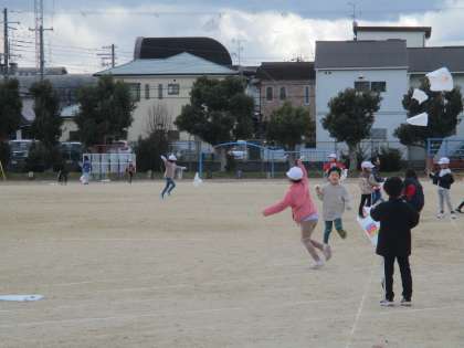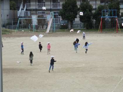 高くあがるように力いっぱい運動場を走っています。とっても楽しそうです。