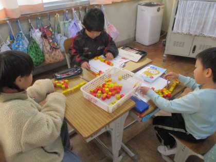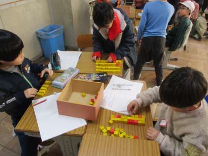 「20より大きいかず」の学習が始まりました。10のまとまりをつくって、ブロックの数を数えました。