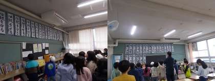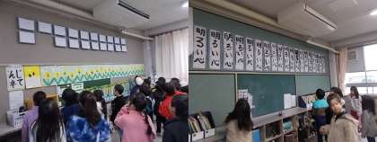 各学年、それぞれに丁寧に書かれた作品を熱心に見て回りました。