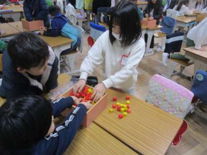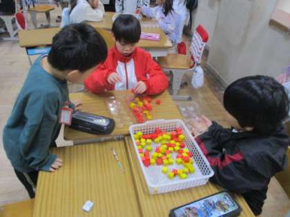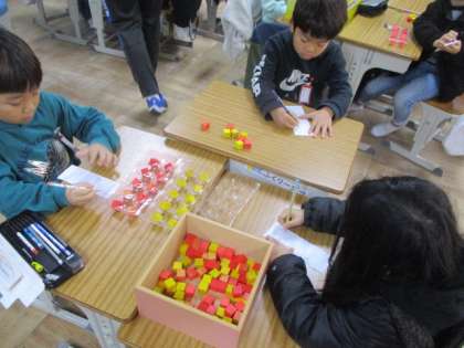 10こセットになった数を「十のくらい」、バラバラのものを「一のくらい」に書くことを学習しました。