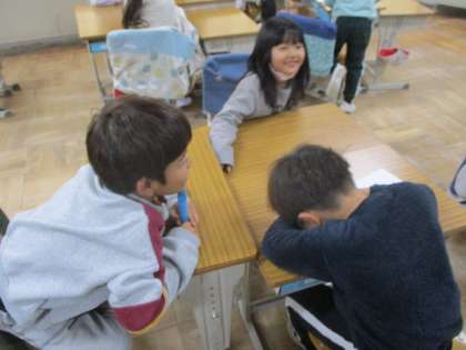 1年生 国語 公開日 2024/01/26 更新日 2024/01/26 1年生 「まと」から「とまと」など、一文字増やして変身する言葉を考えました。その言葉を説明して、何に変身するのかクイズを出し合いました。