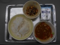 ごはん卵スープビビンバ風さつまスティック牛乳