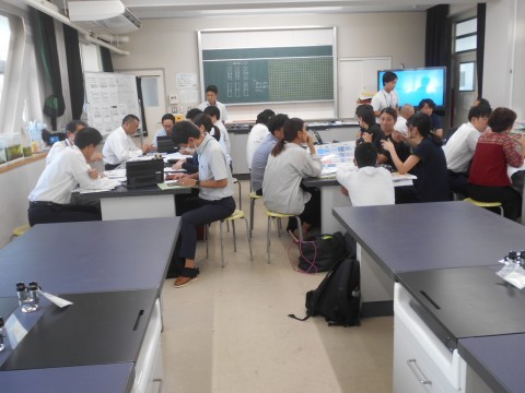 本日の5時間目の理科授業について,他校の先生が集まり討議会を行いました。