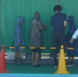 10月1日の5時間目の理科授業では,雨量や風速をそれぞれの班が体感・測定し,実際の台風の時の雨や風がどのようなものなのか考え合いました。