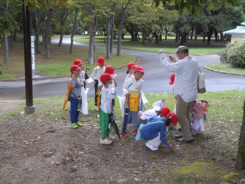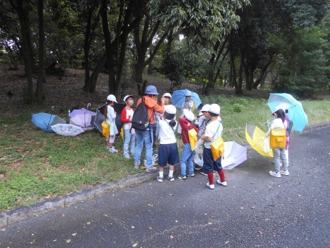 少し雨が降りましたが,どんぐりひろいに行きました。