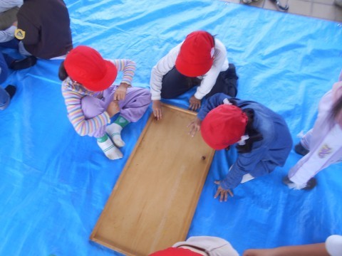 どのこまがよく回るか,みんなで見合っています。最後は,本日のふりかえりです。
