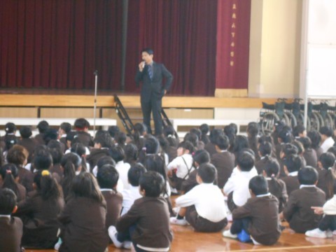 校長先生より,やる時は一生懸命する,遊ぶ時は一生懸命遊びましょうと,学校生活の過ごし方についてお話がありました。