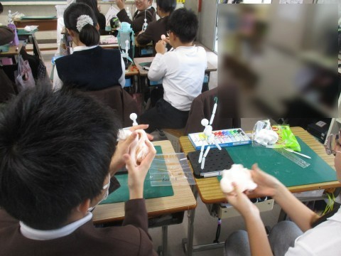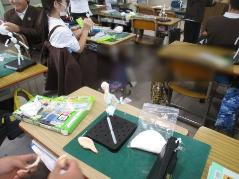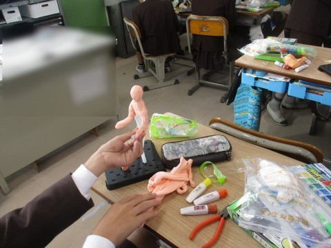 粘土を使って,「未来の自分」を製作中です。