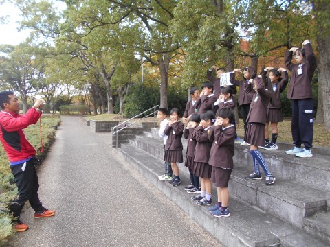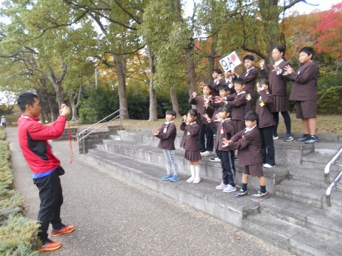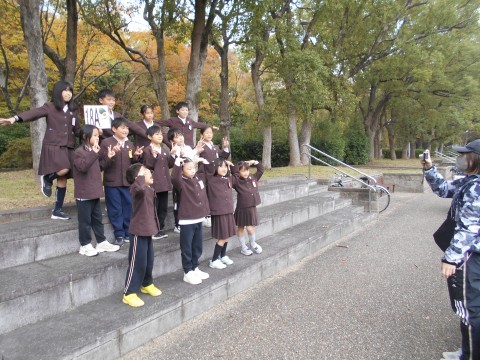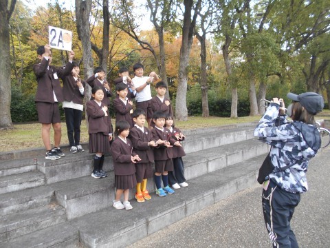 班のみんなで相談して決めたポーズで写真を撮っています。