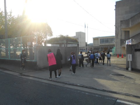 今日は,1年生が生活科で大泉緑地公園へおちばひろいに,4年生は総合で北部作業所の方が講師としてきていただきます。
