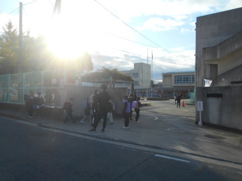 おはようございます。今朝は門で登校時間帯の確認をしています。