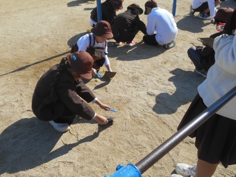 虫メガネの向きや位置を変えて光が集まりやすいように,子どもたちは調整しています。