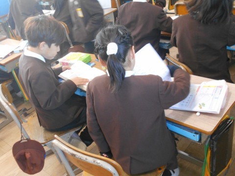 国語辞典や漢字ドリルを使って,回答の確認を進めていました。