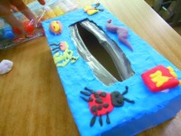 筆記用具を取り入れた絵を表していました。