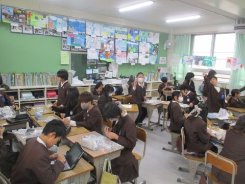 学級で先生からのお話を聞いたり,プラモデル作りでリサイクルの学習したりしていました。