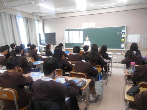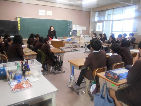3組は1月の学年通信の説明を聞いていました。