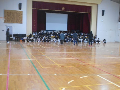 谷川俊太郎さんの詩を学年児童で読む練習を行っています。