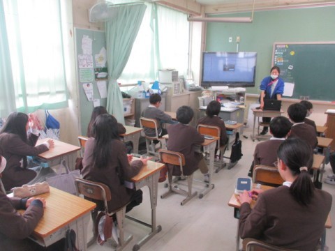 5年2組と3組では,グループLINEの使い方やSNSの注意点について,担任の先生が話をしていました。