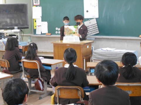 図書委員会が1・2年生に向けて読み聞かせをおこないました。