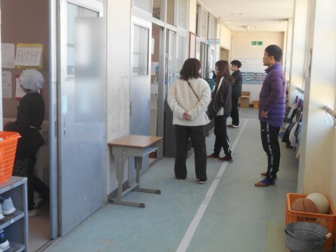 今日は八下中学校の先生たちが,小学校の給食の様子を見に来ました。