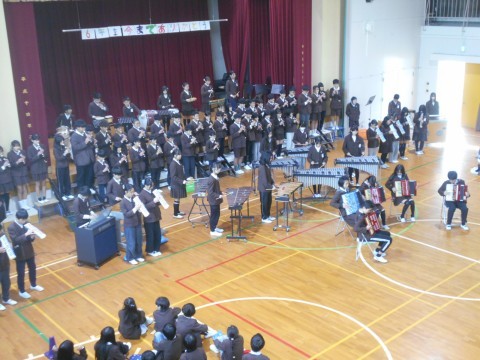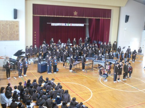 6年生児童から,在校生へのメッセージと合奏披露があり,