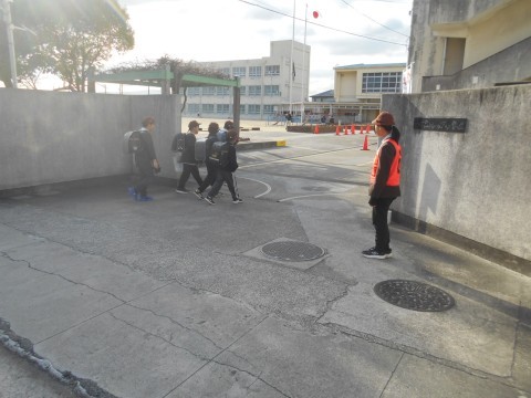 今日は,朝の時間に,安全登校指導を各班に分かれて行います。