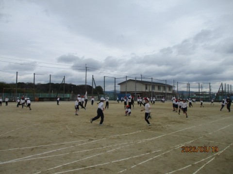 2年生のみんなでお楽しみ会をしました。バナナ鬼ごっことドッチビーをして楽しみました。
