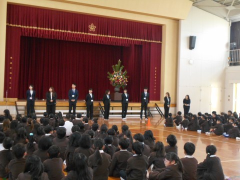 始業式では,校長先生のお話(礼儀,マナー,約束について)担任発表,生徒指導主任からのお話(登校について)お話がありました。