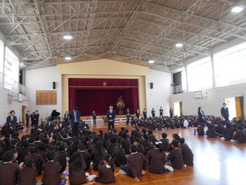 昨日は1年生が入学し,6年生まで全員がそろいました。また,2名の新しいお友達がふえました。