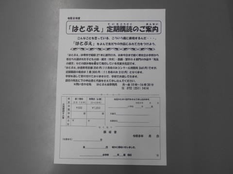 4月9日(木)に,「はとぶえ」定期購読のご案内を配布します。