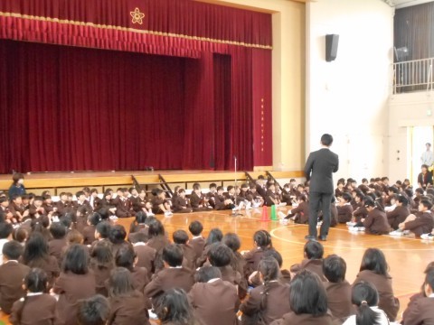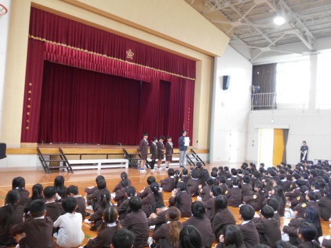 1年生に校歌の歌詞カードがプレゼントされました。