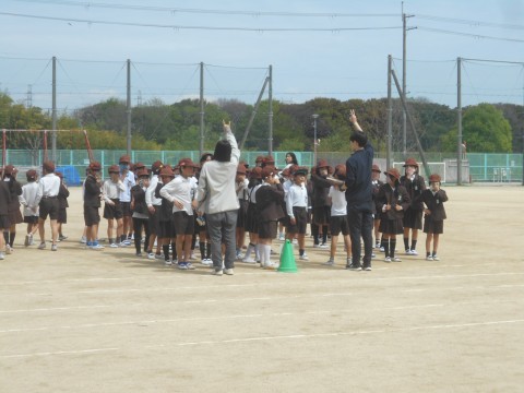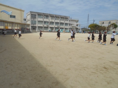 火元からできるだけ離れるように,運動場へ避難しました。
