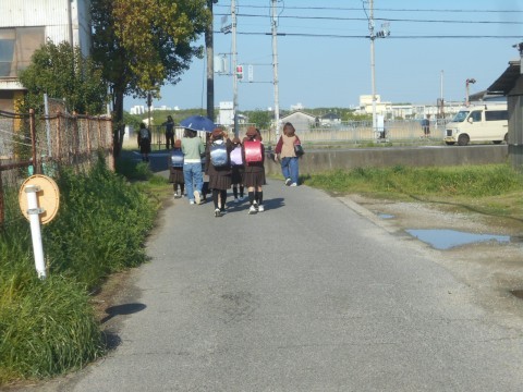また,年度初めということもあり,保護者の方も一緒に登校していただいてます。
