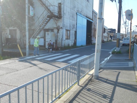 児童の登校の時間帯,地域の見守り隊の方々に子どもたちを見守っていただいてます。