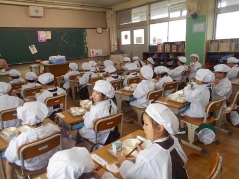 今日もおいしく給食をいただきました。給食の準備も上手に,自分たちでできるようになってきました。