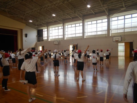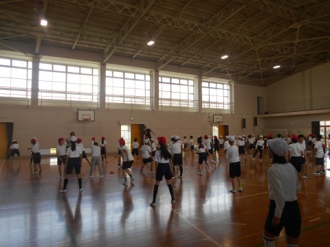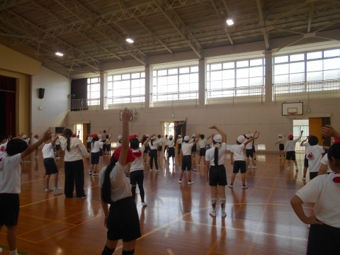 今日から,来月の体育大会に向けての練習が始まりました。5年生は団体演技の練習からスタートです。先生と動きの確認をしながら,一生懸命に取り組んでいました。これから暑くなりますが,本番に向けて頑張りましょう。