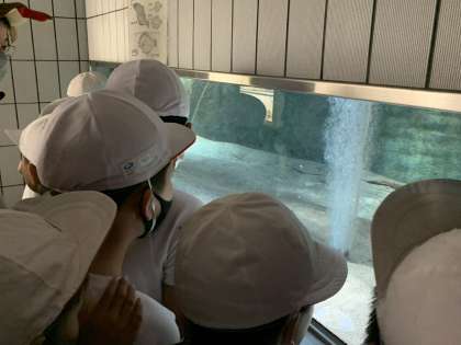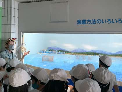 大阪でとれる魚や漁の仕方を学びました。タッチングがあり、ナマコやヒトデ、フグなどをさわることができました。はじめは恐る恐る触っていた子も最後には「かわいい!」と言って楽しんでいます。