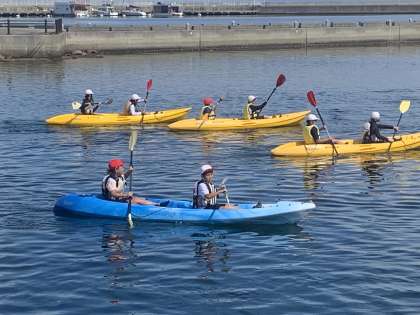 今日は、浜辺の活動とカヤックのグループに分かれて途中で交代します。